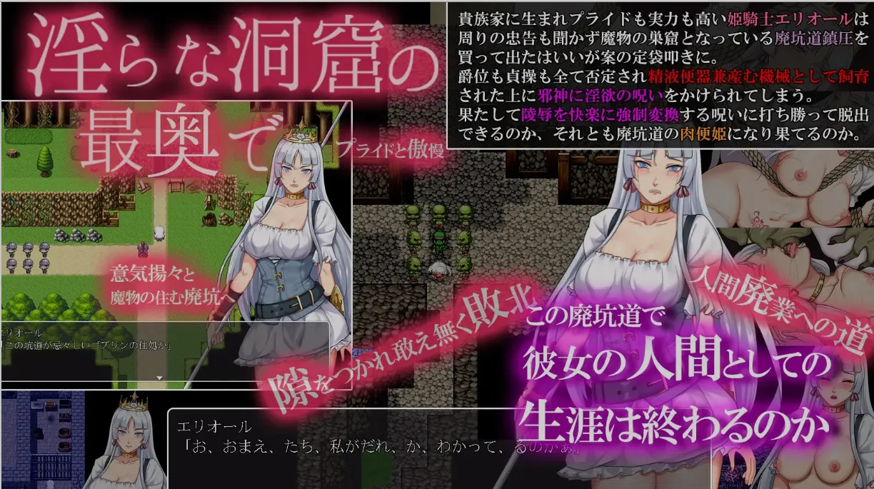玩家操纵主人公艾里奥尔,一边被哥布林等怪物侵犯,一边解谜,以坑道的出口为目标。