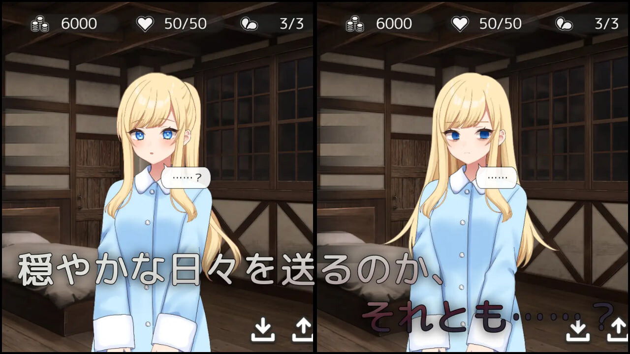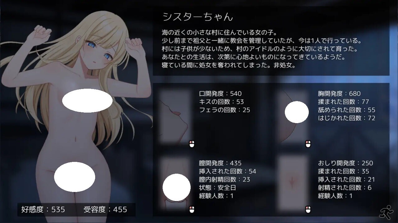 游戏的基本流程是:工作日白天工作到傍晚,晚上与修女酱进行交流,采用经典的系统设计。