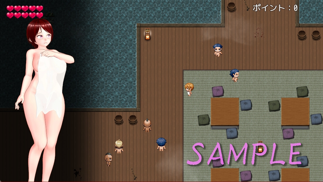 这是一款简单的色情小游戏,玩家需要在被男性客人追逐的同时进行打扫。
