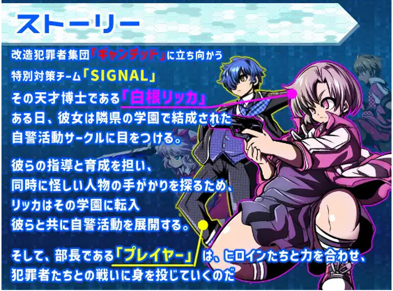 这是一个关于在不久的将来,凶恶的改造犯罪者集团“Gandated”和对策团队“SIGNAL”之间的战斗故事。
