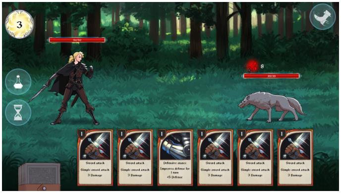 这是一款少见的欧美2D卡牌战斗游戏。游戏画风给力,2D动态CG场景,背景是西方玄幻世界。